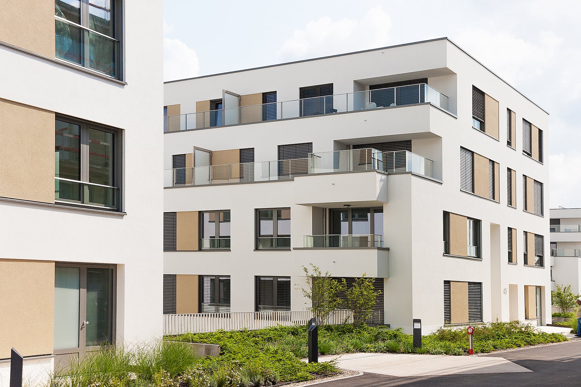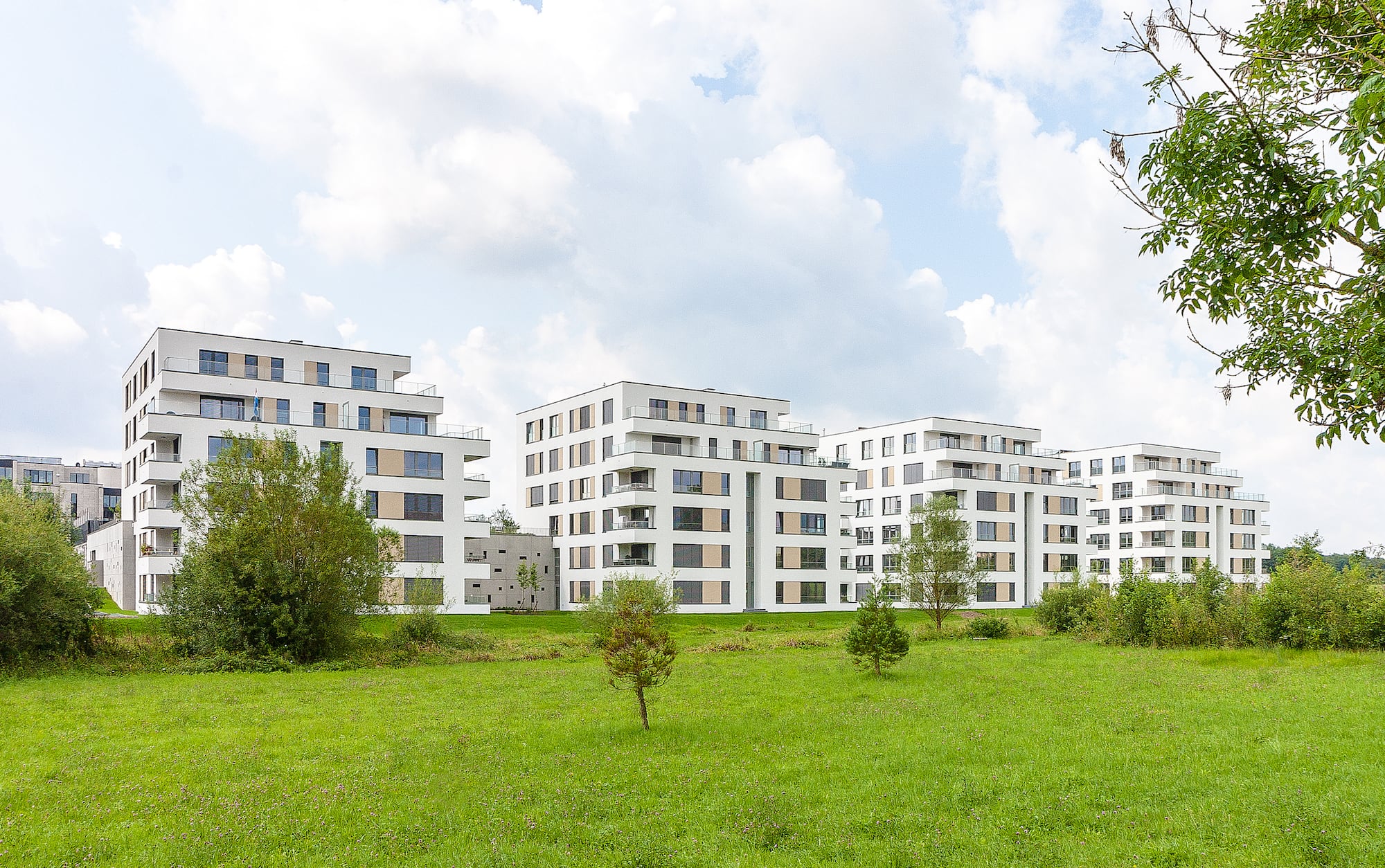 Neubau eines Gebäudeensemles aus 5 Appartementblöcken, 1 Bürogebäude sowie einer gemeinschaftlichen Tiefgarage